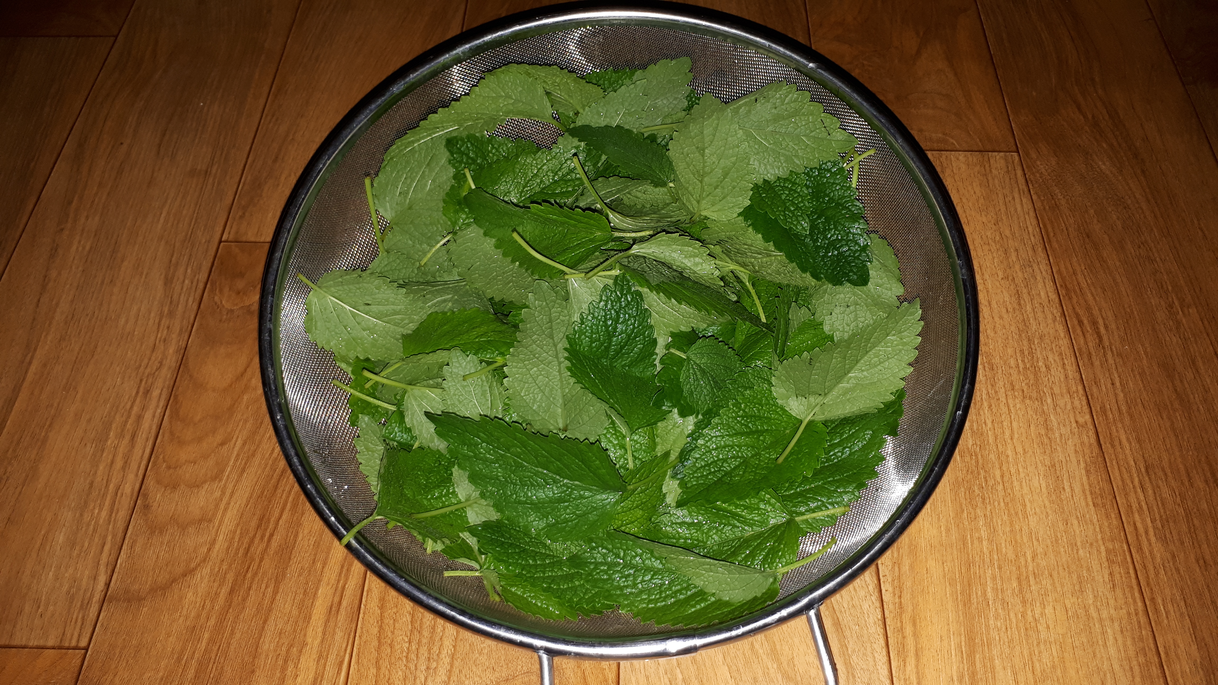오늘 가지치기 순 자르기를 하면서 레몬밤을 한 움큼 정도 수확했습니다