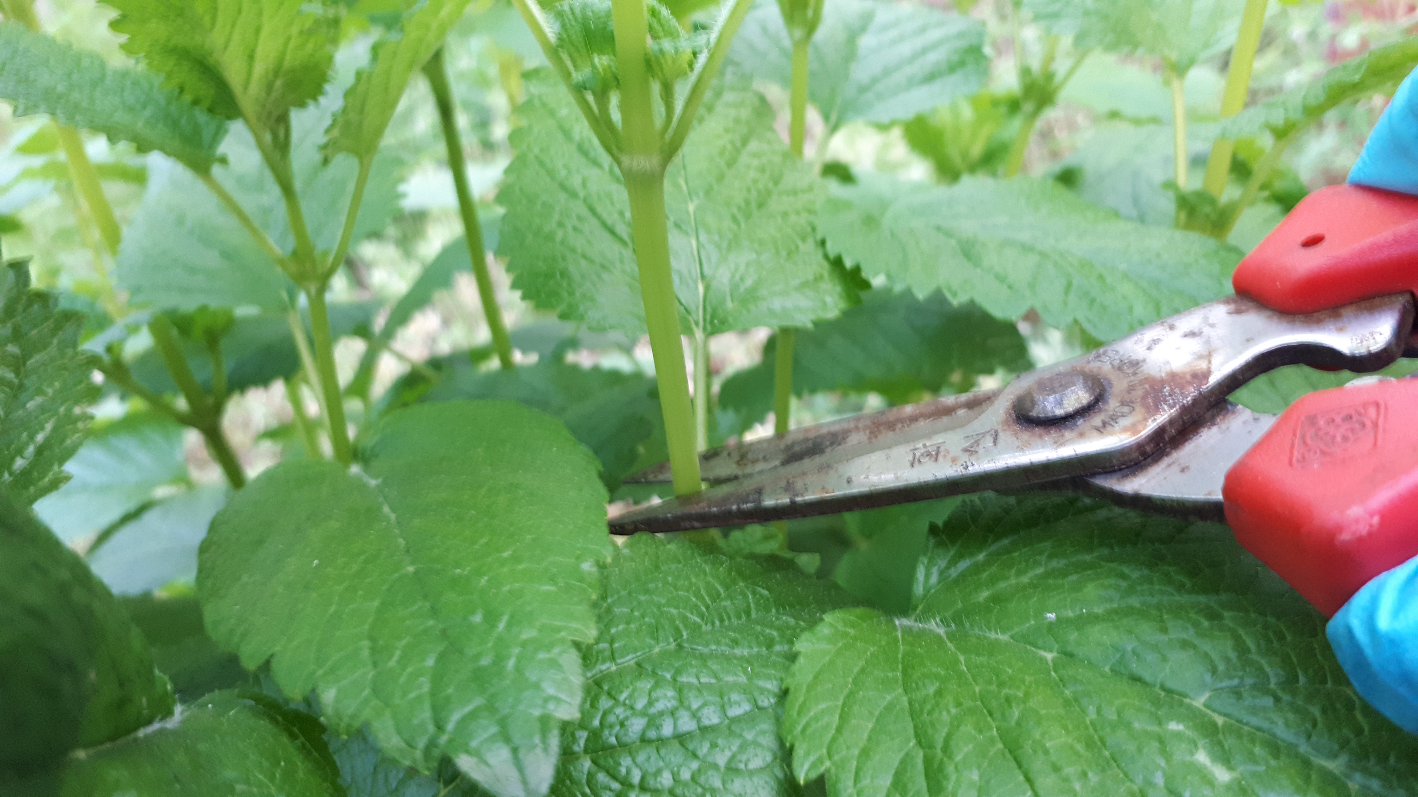 수확의 주목적은 가지치기를 하여 레몬밤 수형관리 목적과