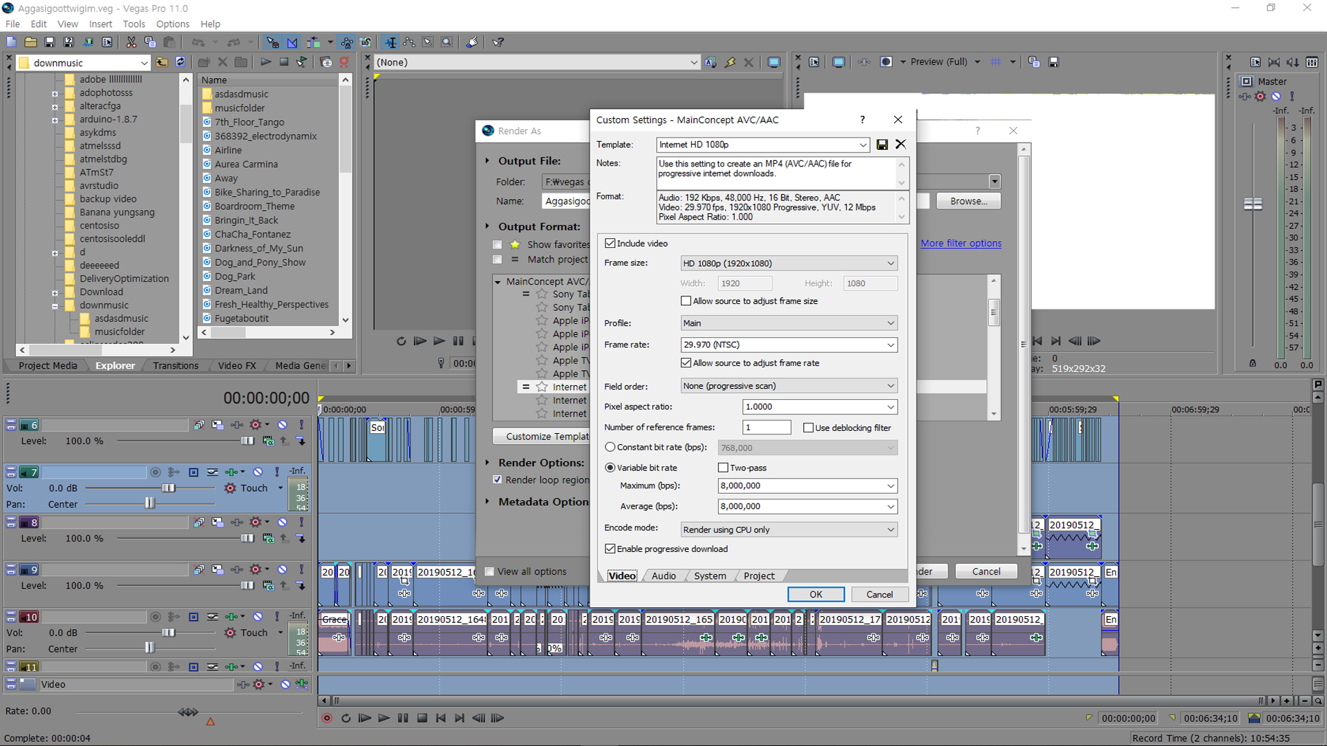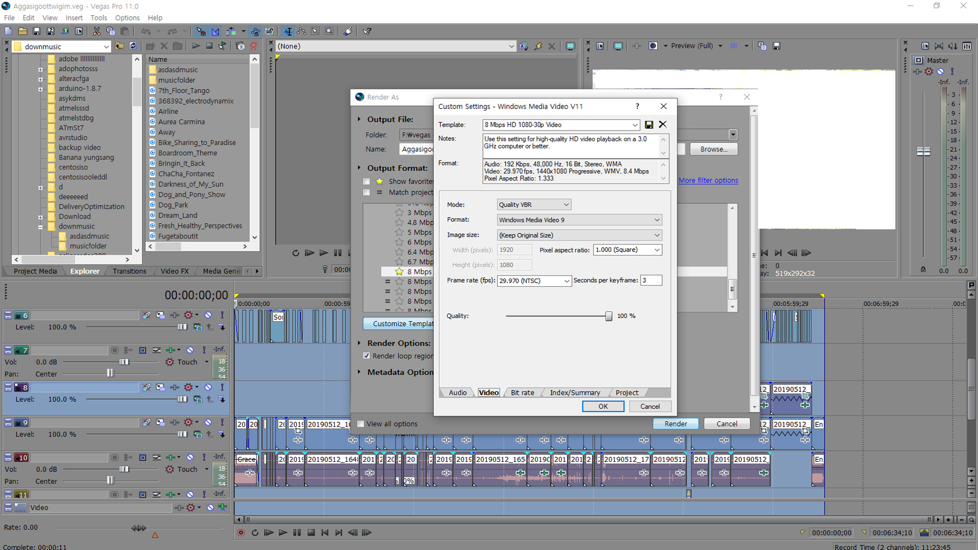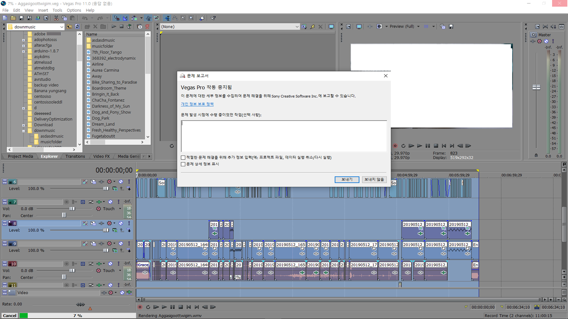 베가스 11 영상을 마지막에 렌더링 할 때마다 렉 걸리고 오류 나서