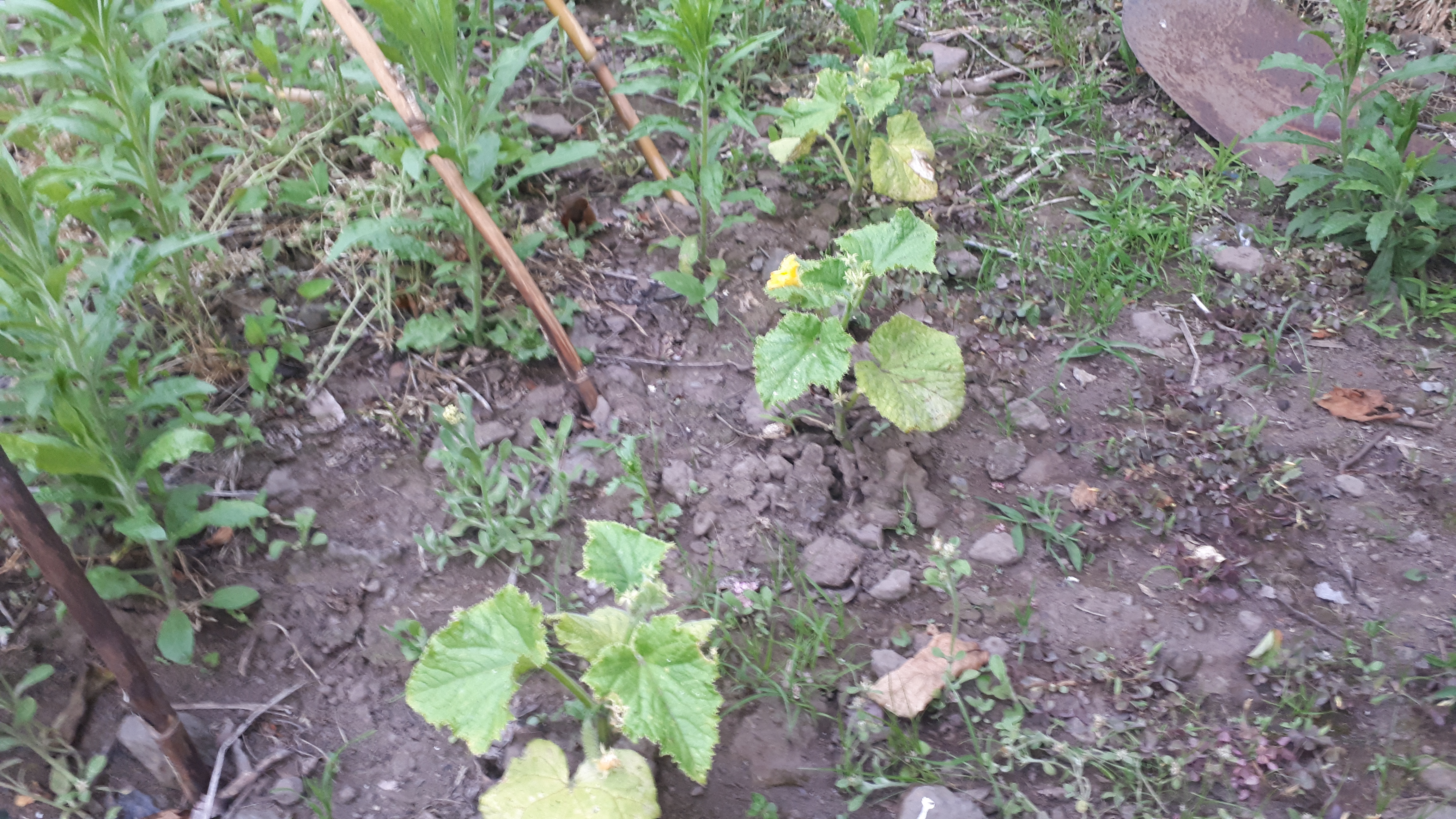 총 6그루 오이를 심어줬고 오이 옆에는 대나무 지지대를 심어줬습니다