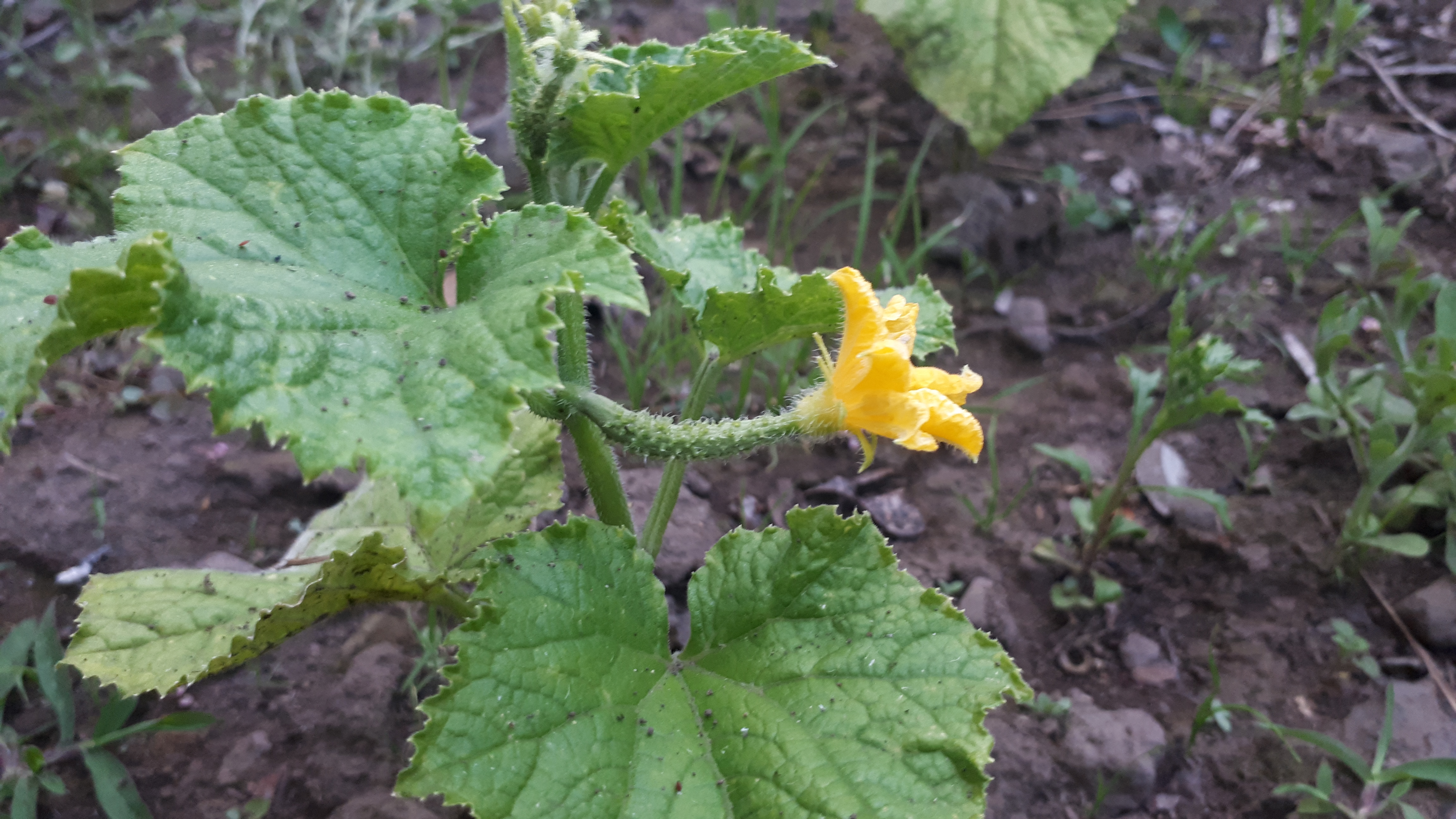 오늘 오이 모종을 확인해보니 오이꽃이 폈습니다