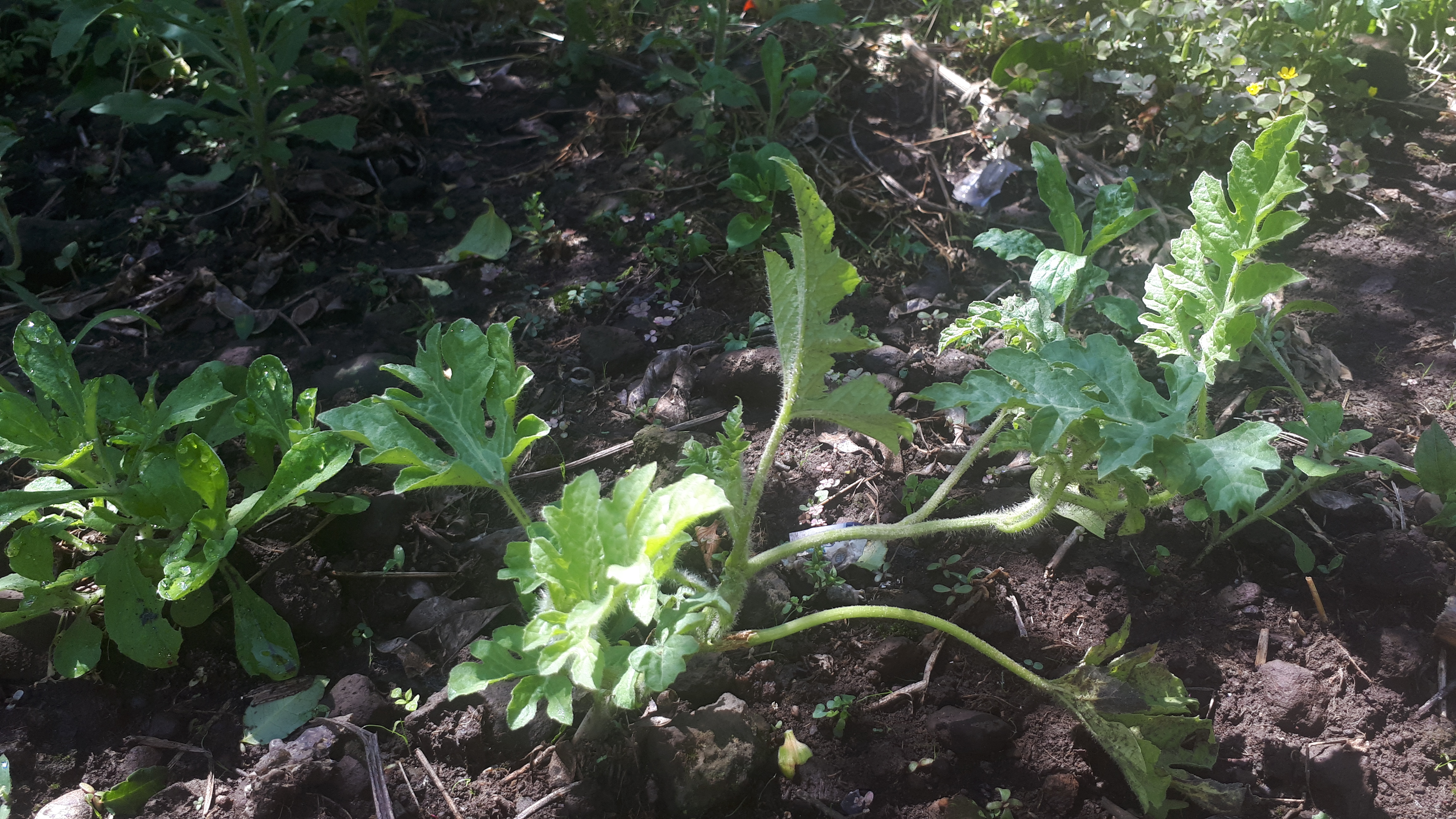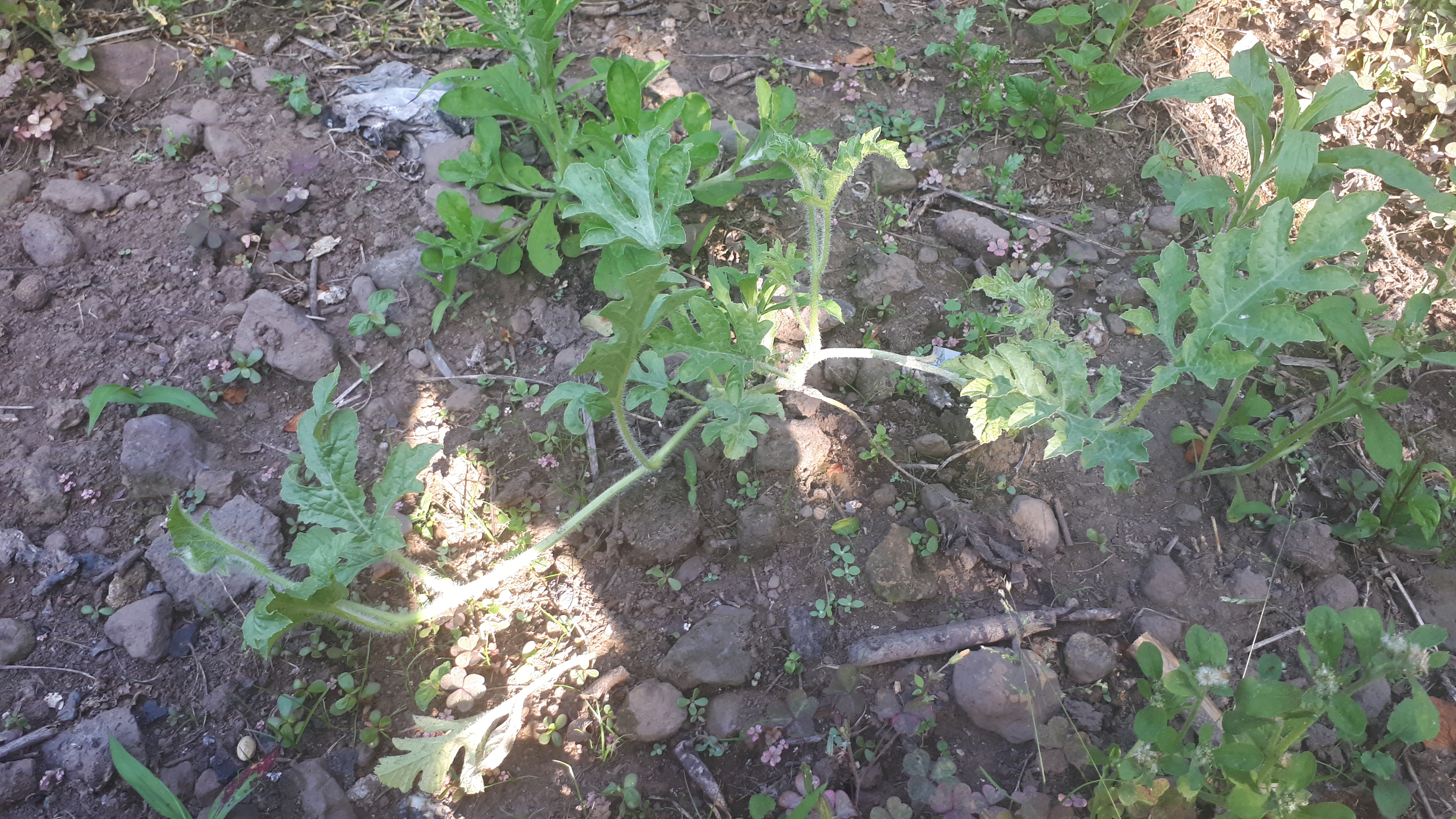 이 수박 덩굴은 다른 품종의 순으로 인해 영양분을 빼앗겼기 때문에