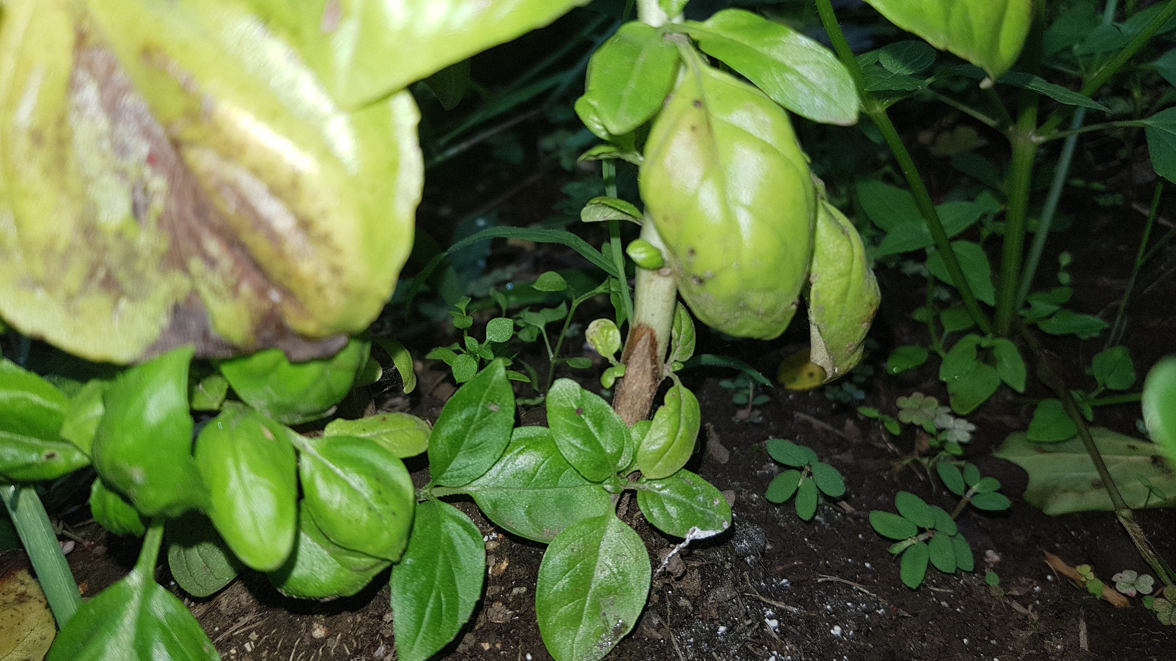 바질 밑 부분에서는 햇빛을 상대적으로 못 받고 약해서 그런지