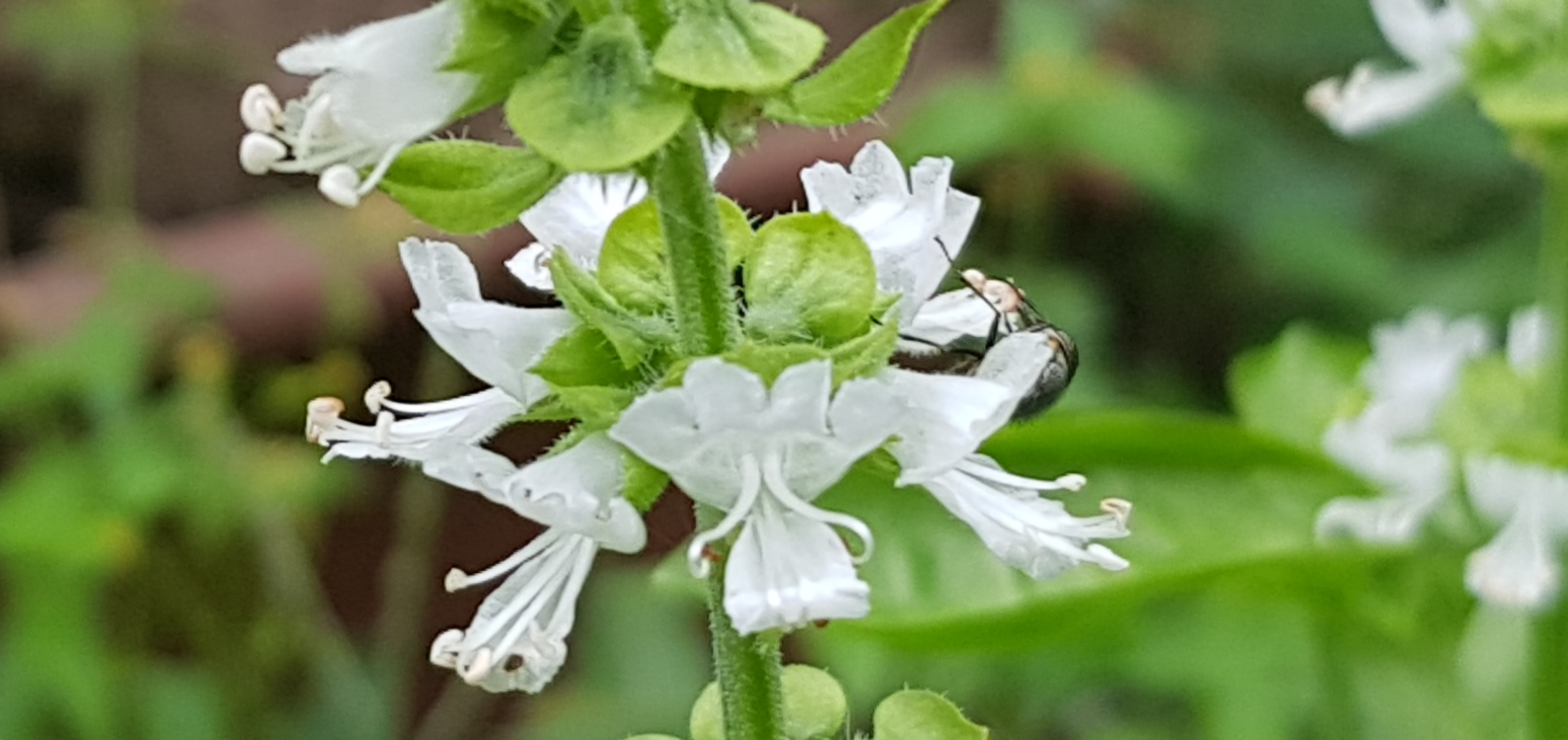 수분이 이루어질 때는 벌이 가장 좋지만 바질 꽃에서는 벌은 오지 않고