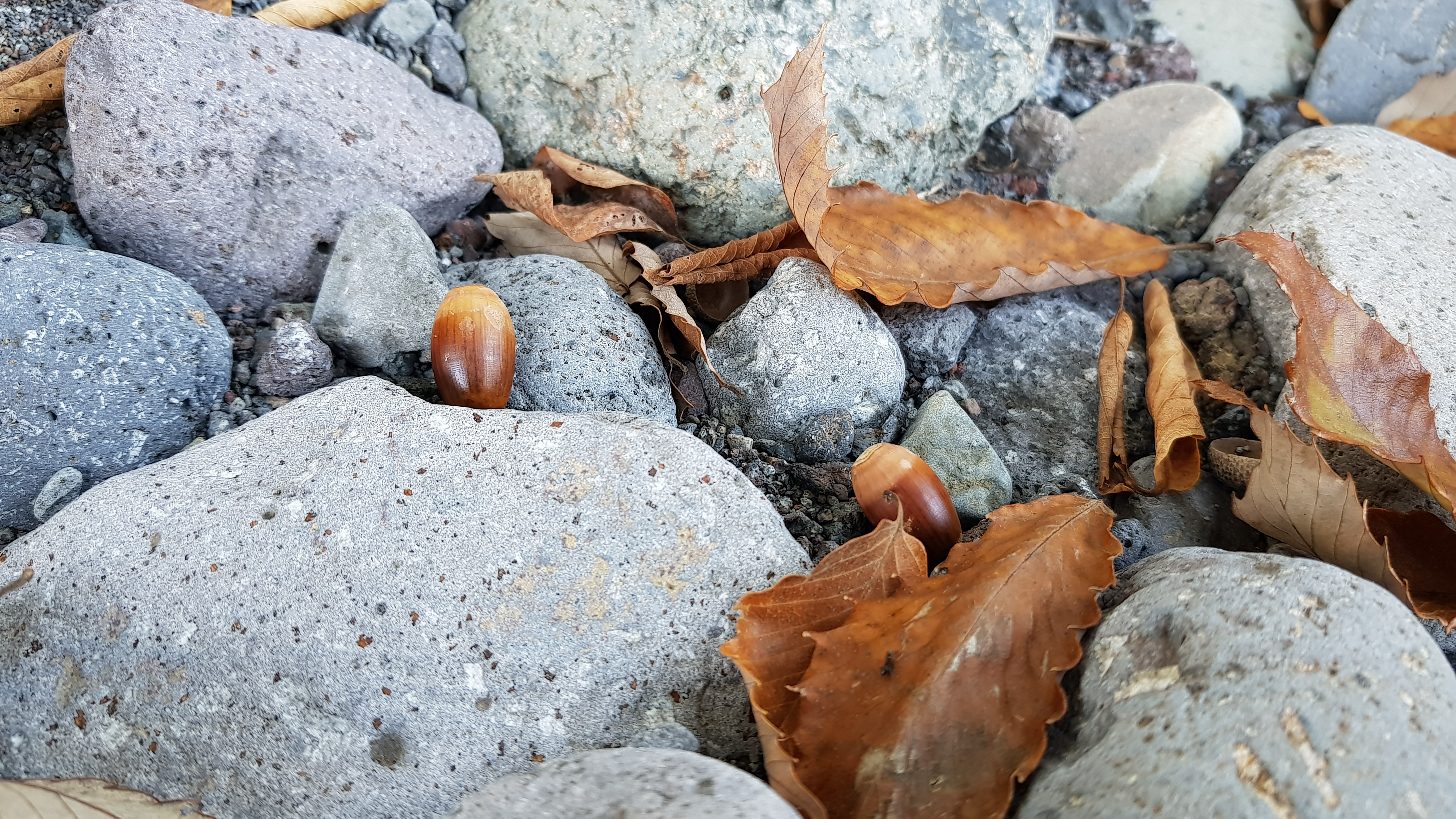 이제부터 참나무 씨앗을 채취(줍는 행위) 할 것입니다 참나무 씨앗을 채취하는 것은 별로 어려운 점은 없습니다 참나무 근처를 잘 탐색하고 특히 바람에 의해서 불러 난 경우나 자연적으로 완전히 익어서 떨어진 경우에 씨앗이 튕겨져 나가다가 결국 돌틈사이에 많이 들어가기 때문에 참나무 씨앗을 찾을 때는 이렇게 돌틈사이를 먼저 살피면 쉽게 찾을 수 있습니다