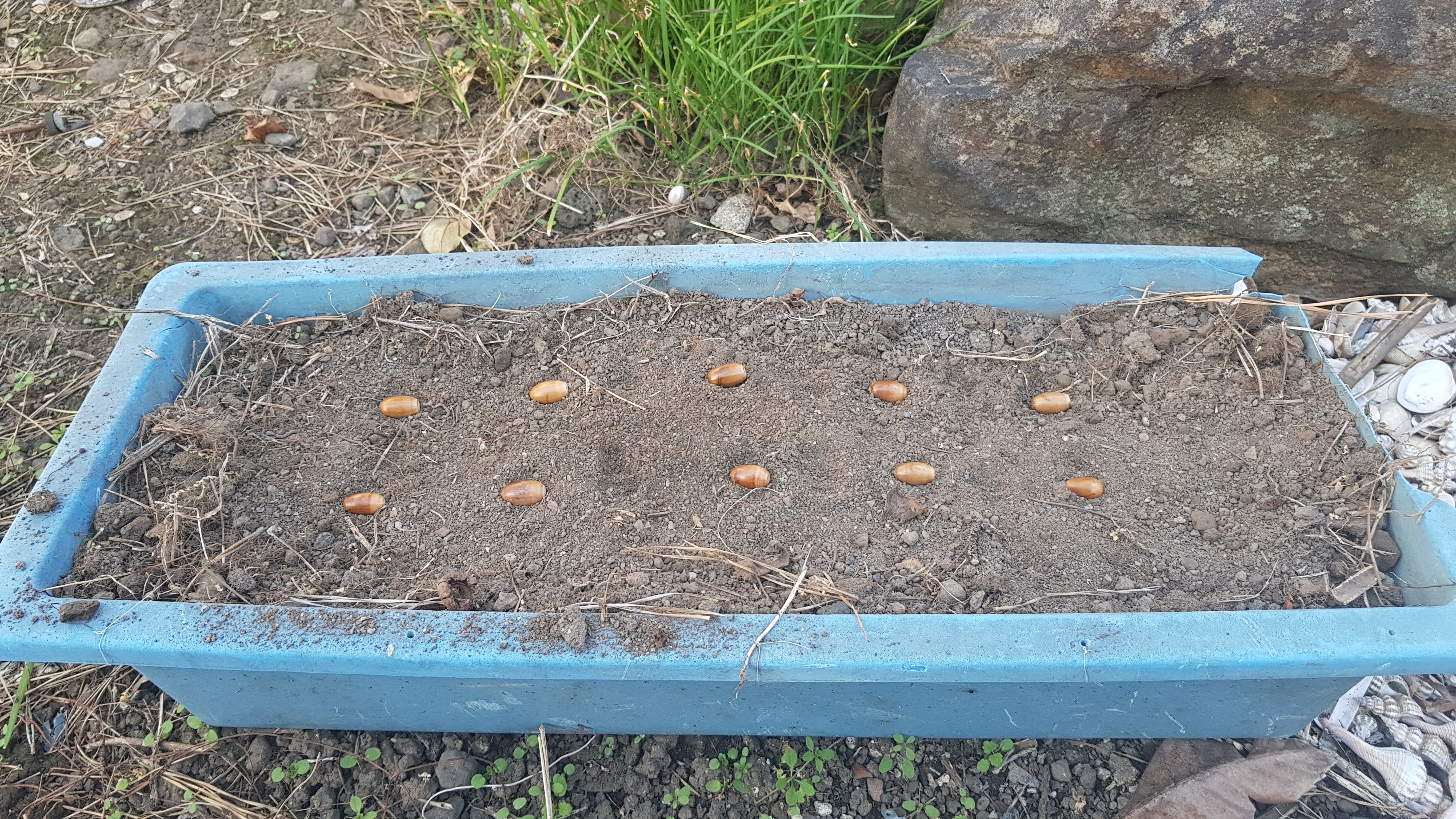 참나무 씨앗 파종 후에 물을 줬습니다 물을 준 이유는 참나무 씨앗이 월동할 때는 땅속의 적당한 수분으로 월동하고 동시에 흙속의 수분으로 발아 억제물질을 조금씩 녹여 발아를 하게 됩니다