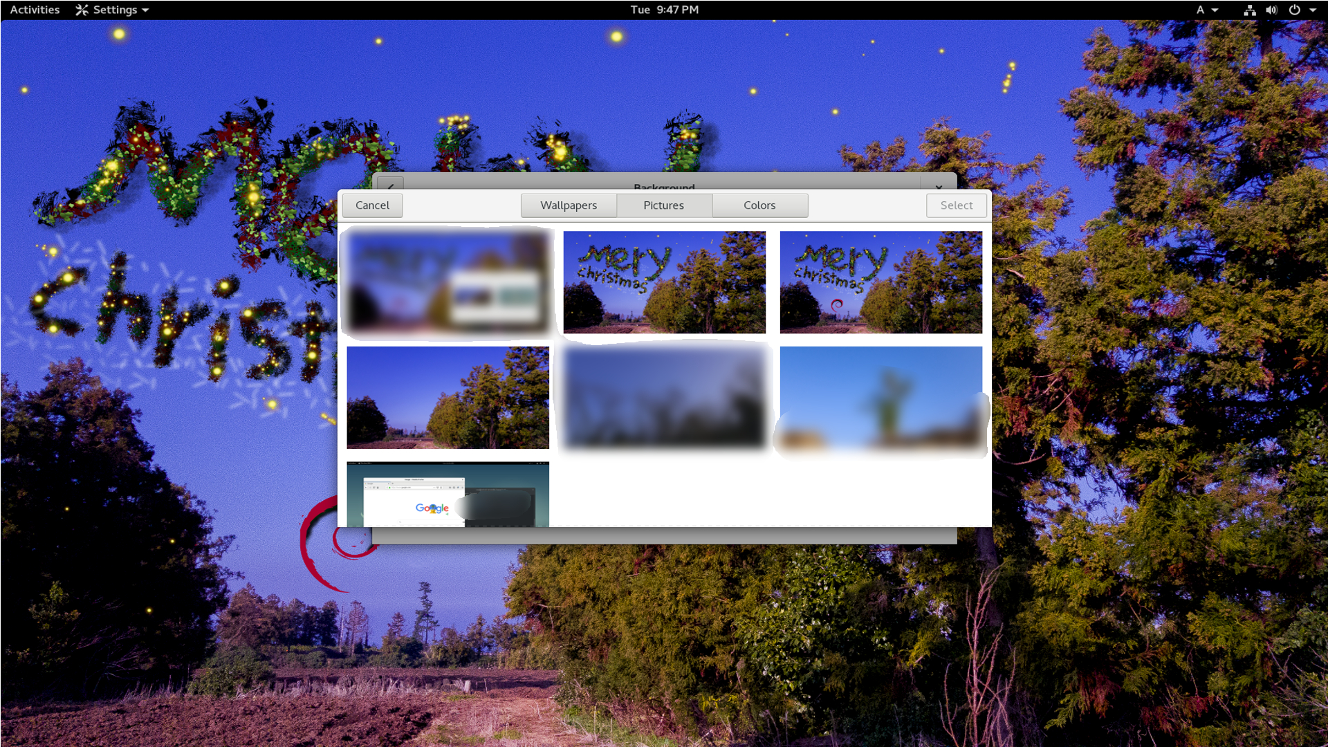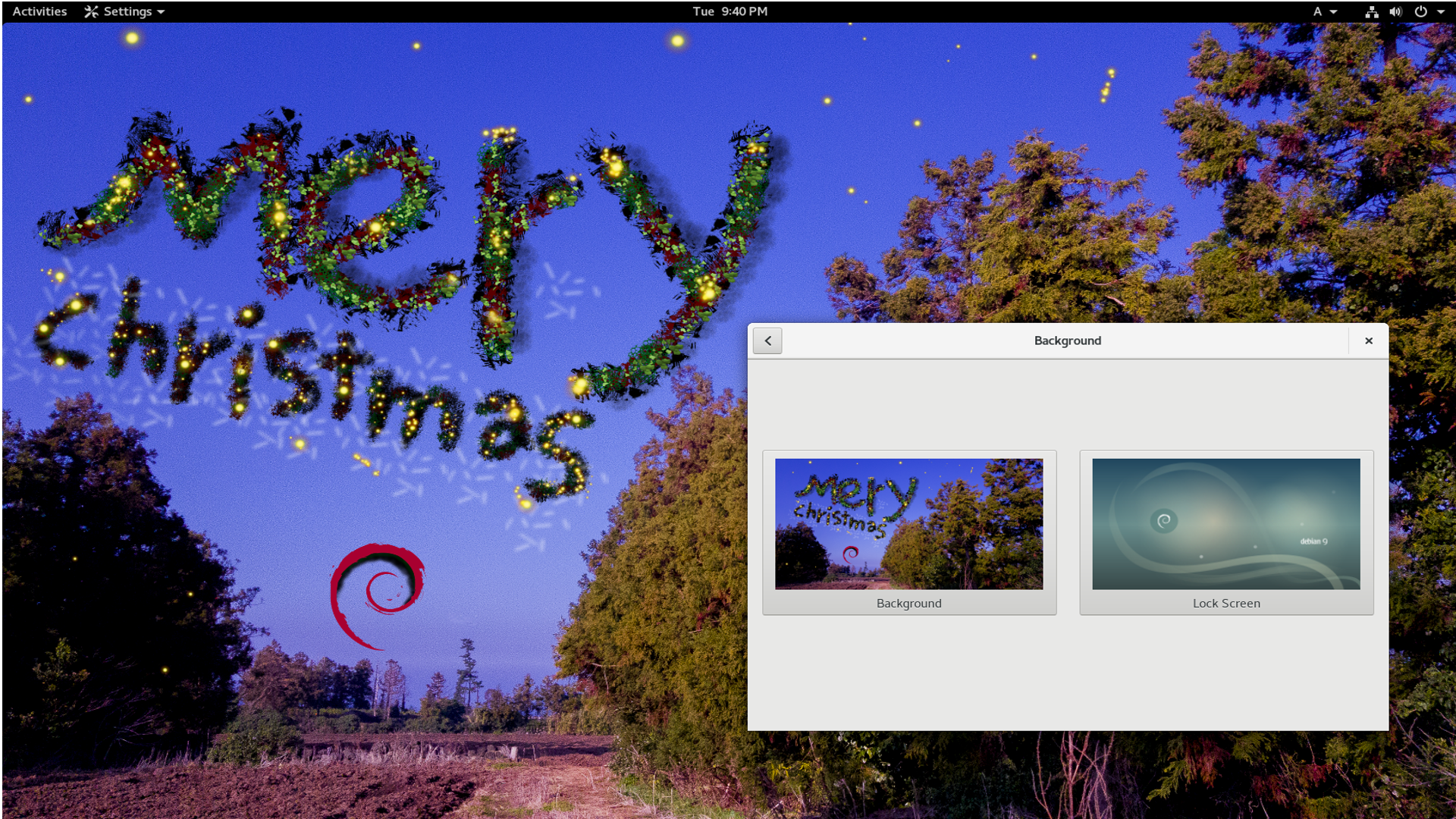 그러면 데비안 기본 바탕화면을 선택할 수 있는 창이 나올 것입니다