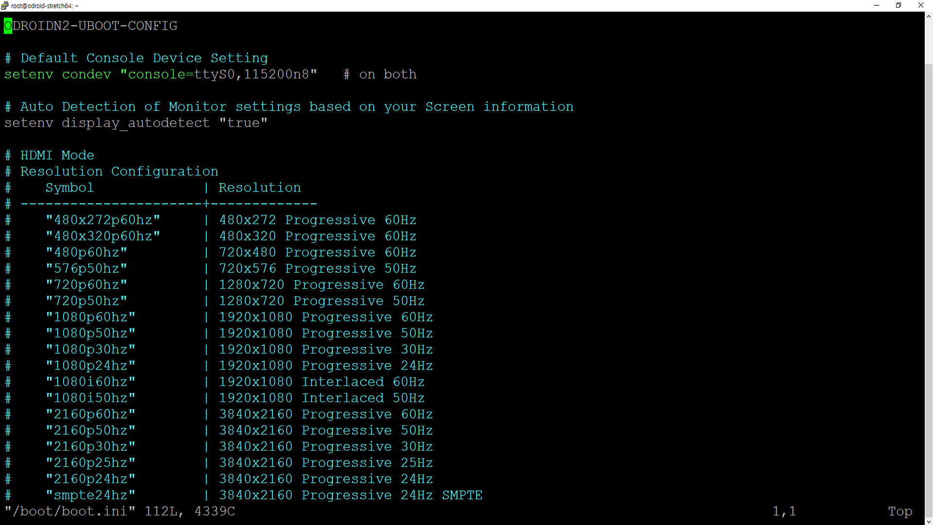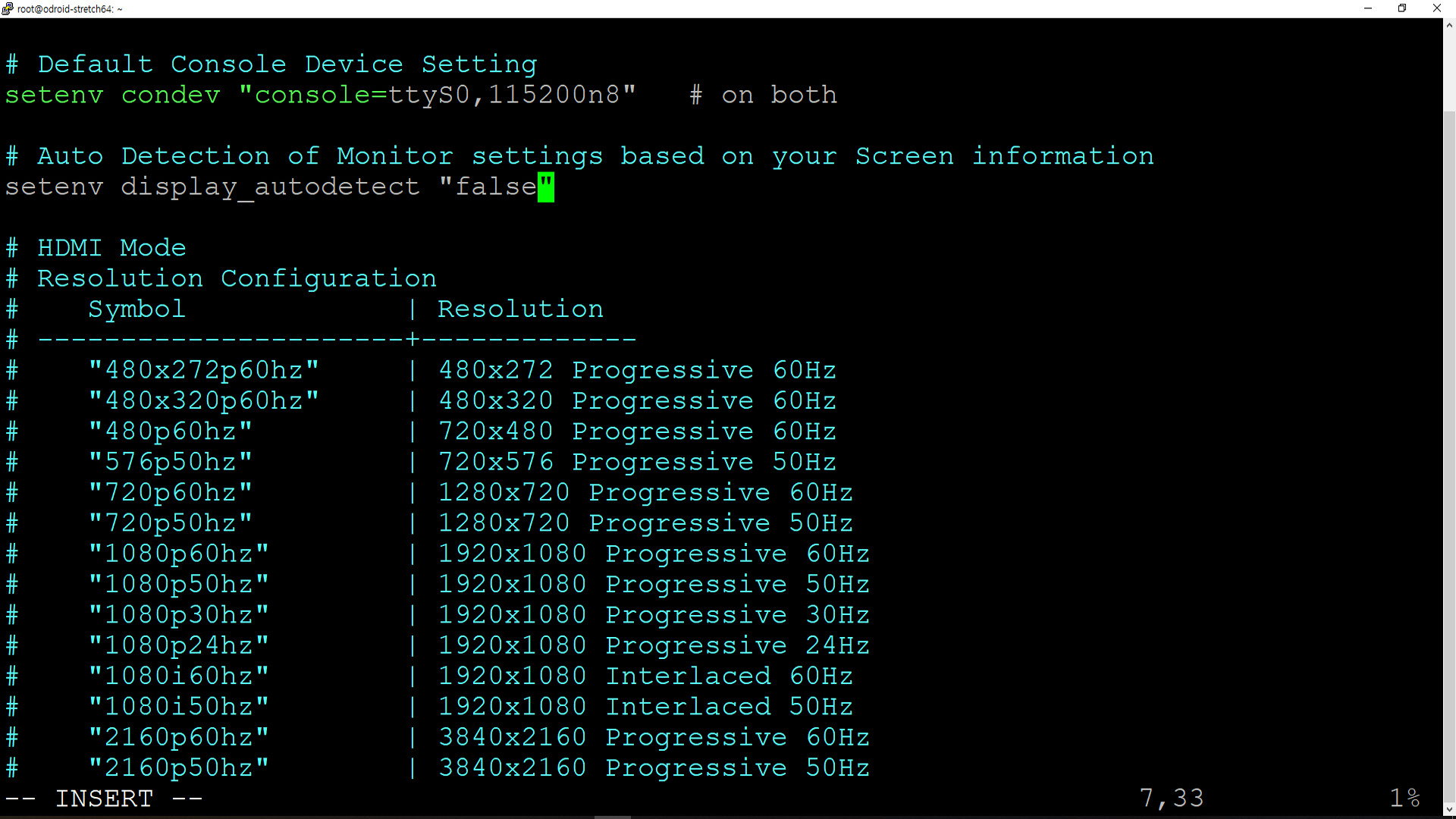 setenv voutmode "hdmi" 이 부분에 #으로 주석 처리하여 hdmi 기능을 끈 다음
