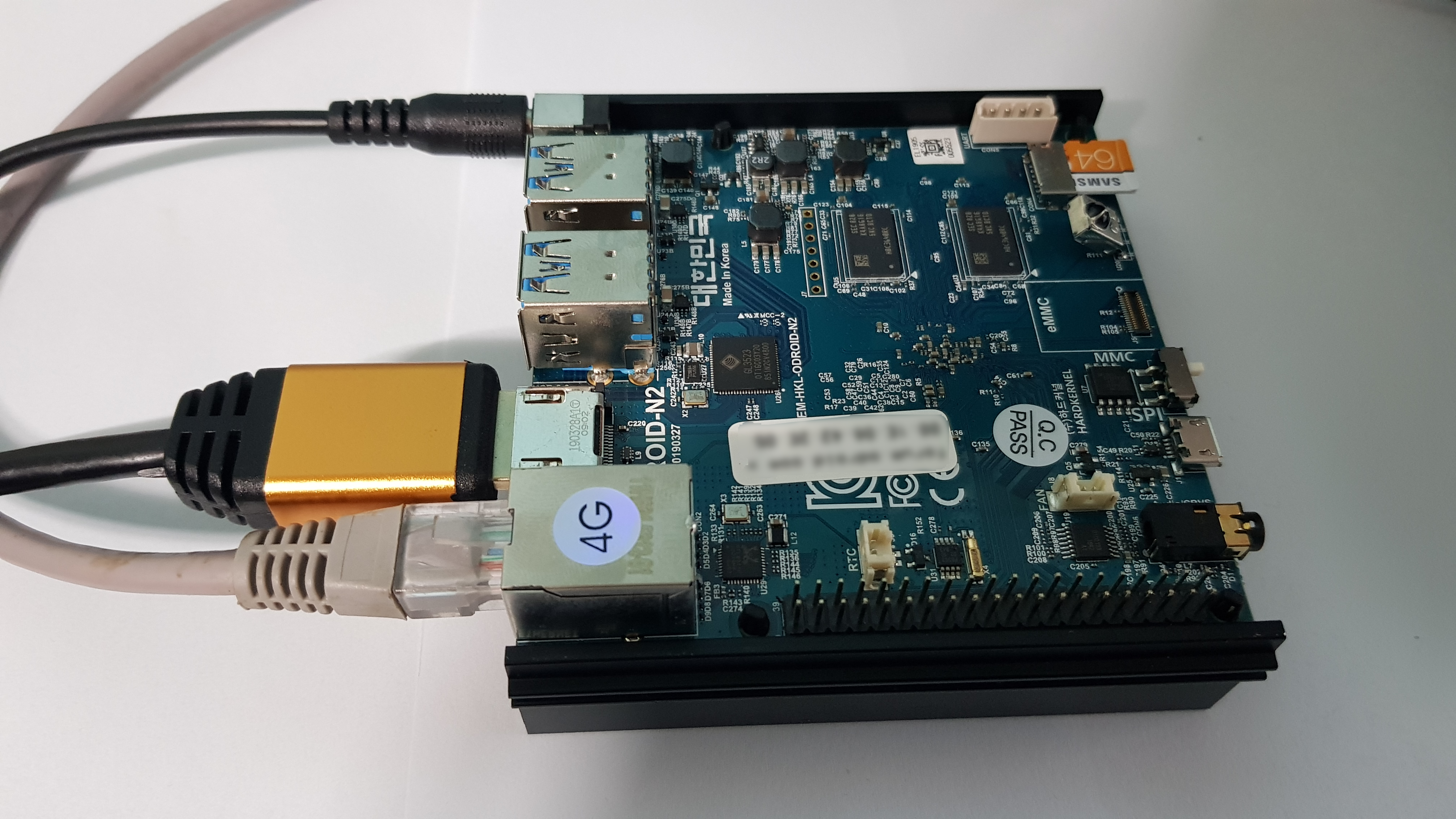 기본 설정이 다 끝났습니다 그럼 dvi to hdmi 케이블을 이용해서 사진처럼 연결하면 됩니다 여기서 다시 부팅을 해줘야 되는데 Odroid N2는 전원 스위치가 없습니다