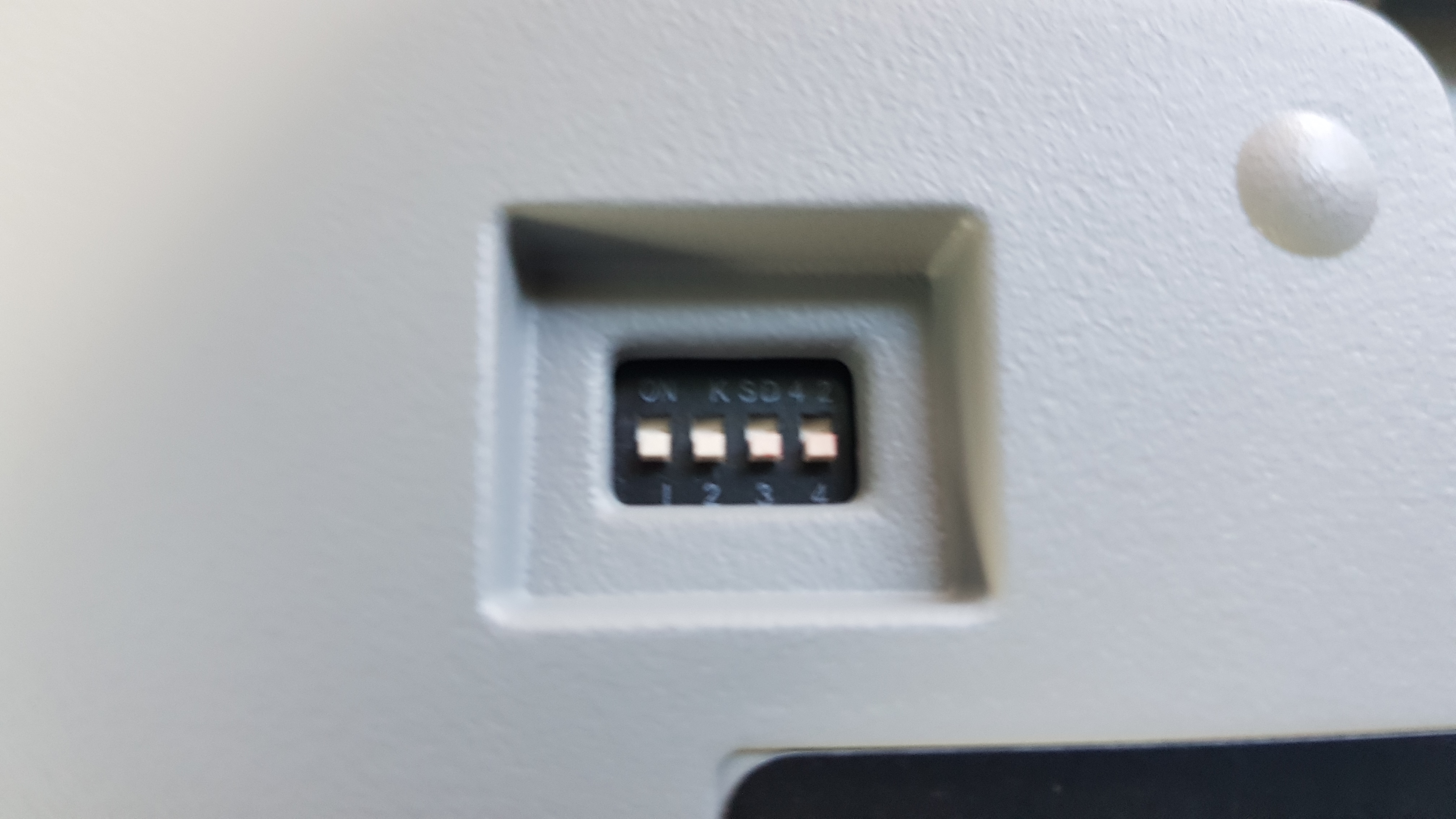 케이블 꽂는 부분 옆에 DIP 스위치가 보일 것입니다 이 부분은 키보드의 키를 설정하는 부분입니다 이 내용에 대해서는 다음 사진에서 설명합니다