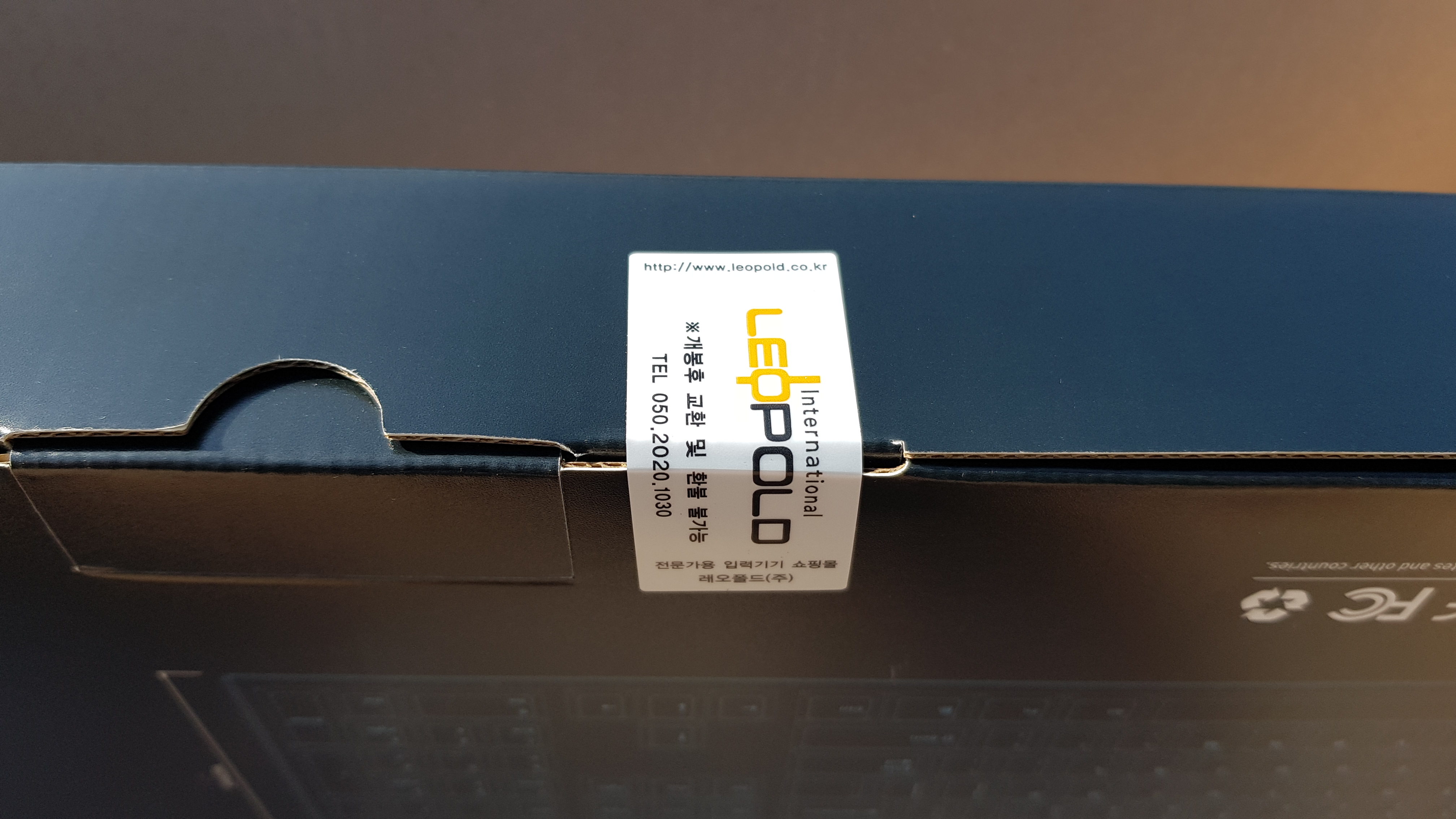 먼저 키보드 상자입니다 키보드 상자 앞면에는 LEOPOLD 로고가 크게 박혀있고 택배는 우체국 택배로 왔습니다 구매는 레오폴드 공식 홈페이지에서 하면 되는데 품절이 많아서 원하는 디자인 키보드를 구매하는 게 조금 힘든 것이 단점입니다