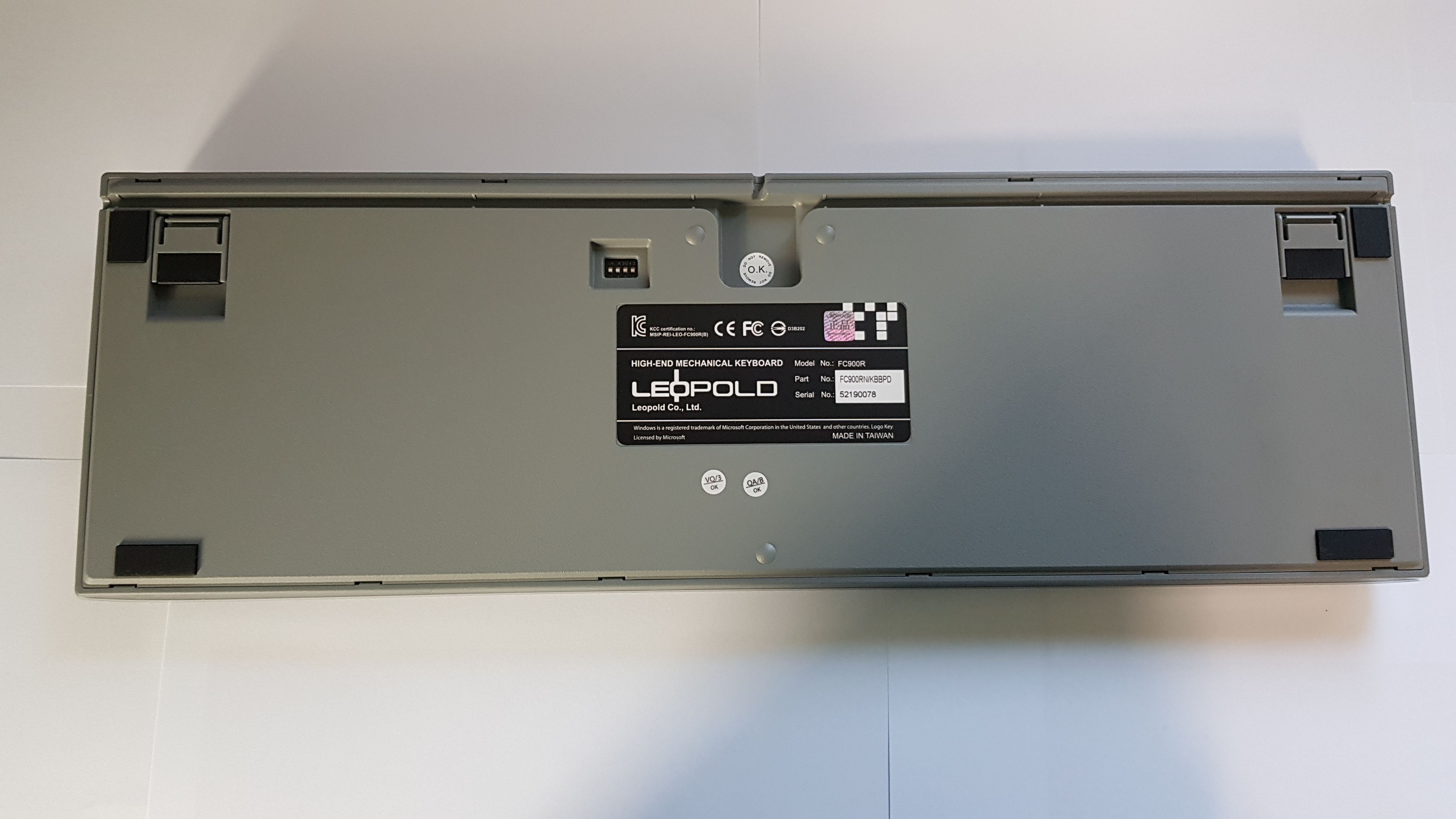키보드 뒷면에는 보통 키보드와 마찬가지로 높이 각도 조절하는 것과 키보드 케이블을 꽂는 부분 키보드가 밀리지 않도록 하는 고무마개로 되어있습니다 고무마개는 원래 사용하던 키보드보다 더 좋고 무엇보다도 키보드를 사용할 때 쉽게 밀리지 않고 묵직한 느낌이어서 좋습니다