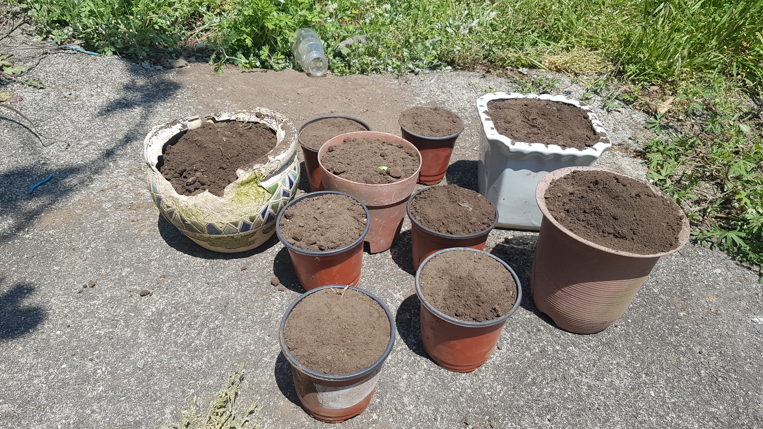해바라기 씨앗 파종하기 앞서 마당 주변에 굴러다니는 작은 화분들을 최대한 모아봤습니다 이 화분들에 모두 해바라기 씨앗을 파종해서 발아할 것입니다 이제까지 해바라기는 한 그루만 모종으로 키웠는데 이번에는 해바라기 발아율 비교하는 김에 화분 10개 이내로 준비해서 발아를 했습니다