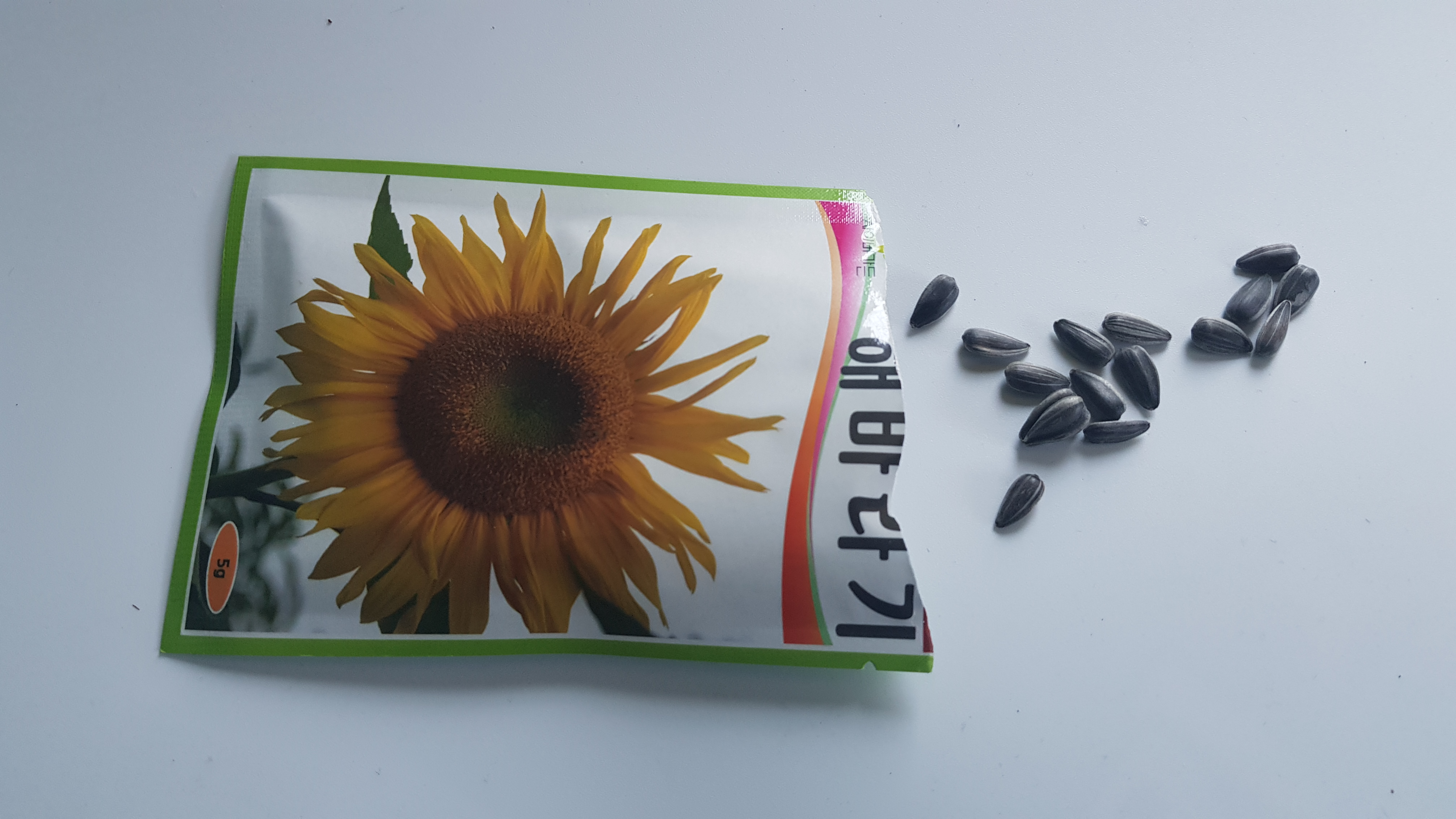 해바라기 씨앗 봉투를 개봉했습니다 해바라기 종류는 미니해바라기, 테디베어 해바라기 등 여러 종류가 있고 씨앗의 색은 종류에 따라 주로 회색 검은색을 띱니다 이번에 발아해볼 해바라기는 밖에서 키우고 씨앗도 많이 채종 할 것이기 때문에 일반적인 키가 큰 해바라기 씨앗을 사용했습니다